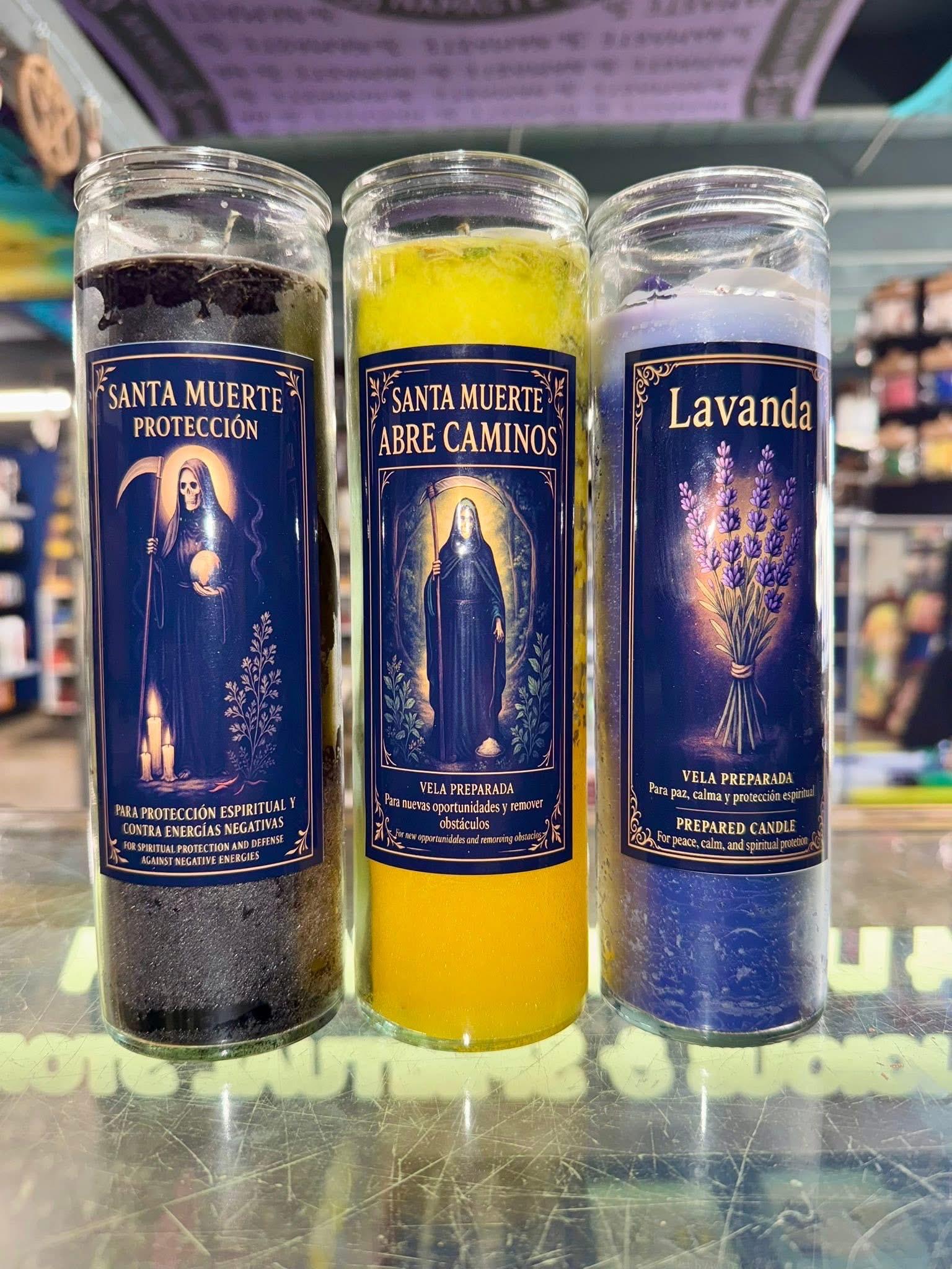 Each candle is blessed with intention, allowing the flame to focus your energy and connect you with the powerful, protective presence of Santa Muerte. Burn during meditation, prayer, or ritual to invoke guidance, protection, and transformative energy.