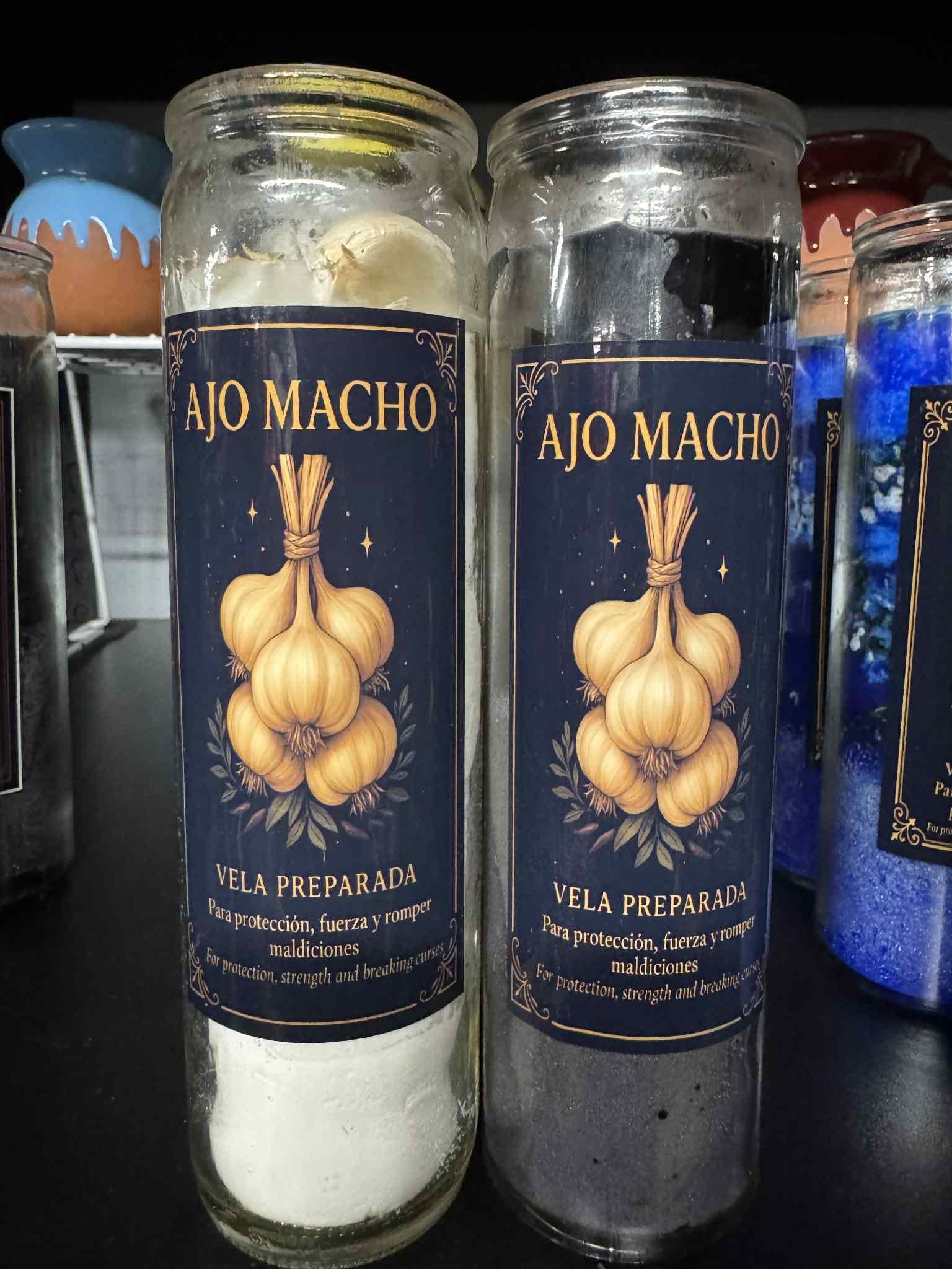 7-Day Ajo Macho Ritual Candle – Handmade by 4 Lunas Botanica Empower yourself with strength, protection, and courage using the Ajo Macho 7-Day Candle. Hand-poured in small batches by 4 Lunas Botanica, this candle is infused with ajo macho (garlic) and carefully selected herbs and oils, traditionally used to repel negativity, protect against harm, and boost personal power.