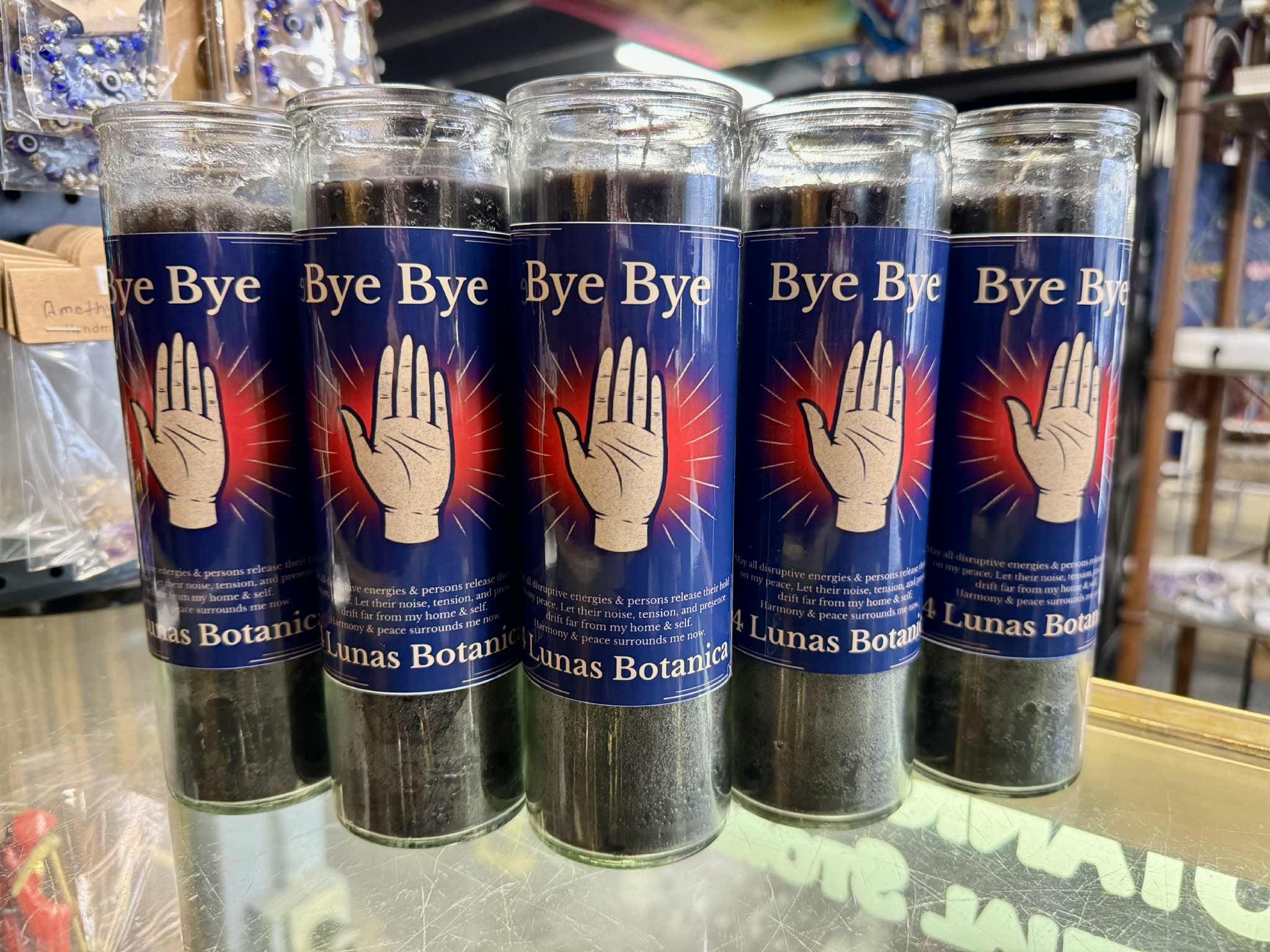 When it’s time to shut the door, block the drama, and cut the energetic cord for good, the Bye Bye Candle steps in with force. Hand-prepared at 4 Lunas Botanica, this candle is crafted to push out unwanted energies, toxic people, nosy neighbors, and low vibrational influences that don’t belong in your space. Light it when you’re done repeating yourself, done tolerating, and done giving access to what no longer serves you.