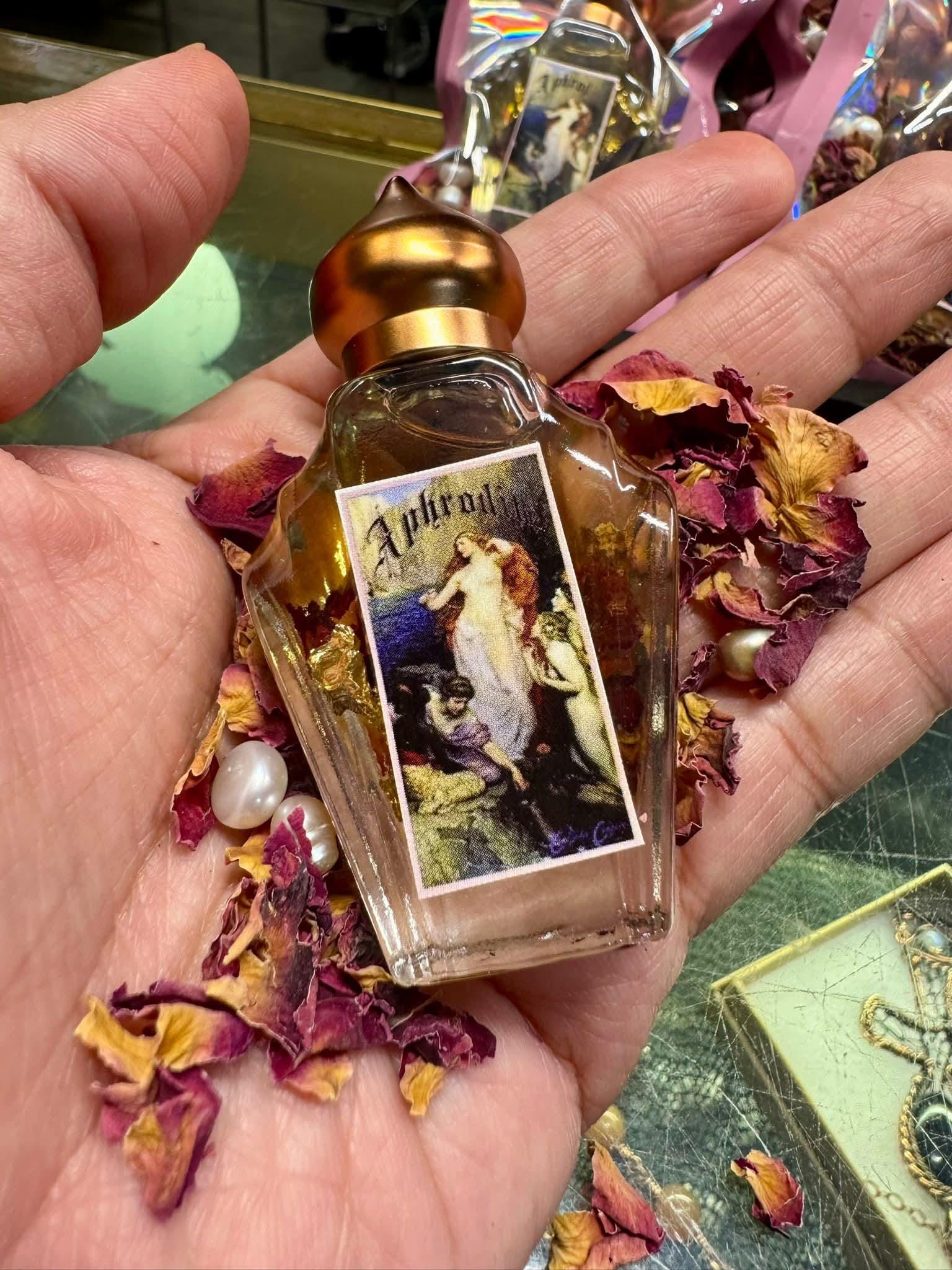 πΉ Aphrodite Oil β Handcrafted Ritual & Attraction Oil Invite beauty, desire, and magnetic energy into your life with Aphrodite Oil, a handcrafted ritual oil inspired by the timeless power of love, attraction, and self-worth. Carefully blended in small batches, this oil is created with intention and focus, making it a powerful tool for those seeking to enhance romance, confidence, sensuality, and personal magnetism. β¨ Spiritual Uses: β’ Love & attraction rituals β’ Self-love and confidence work β’ Enhancing glamour, charm, and allure β’ Romantic intentions and spellwork β’ Anointing candles, petitions, and talismans πΈ How to Use: Apply a small amount to candles, ritual tools, or petition papers. Can also be lightly dabbed on pulse points before rituals or moments when you want to amplify attraction and confidence. Always use with intention. ποΈ Handcrafted With Care: Each bottle is handcrafted and energetically prepared, making every oil unique. No two batches are exactly the same. β οΈ Important Notes: β’ For spiritual use only β’ Not intended for internal use β’ Perform a patch test before skin contact β’ Keep away from children and pets This oil is more than a blend β itβs a ritual companion designed to help you own your magnetism and call in what desires you back.