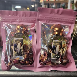 🌹 Aphrodite Oil – Handcrafted Roll-On Ritual & Attraction Oil Experience love, beauty, and irresistible magnetism with Aphrodite Oil – Roll-On Edition, handcrafted for ease, intention, and everyday ritual use. This roll-on format allows for direct, intentional application, making it perfect for personal attraction work, confidence rituals, and moments when you want to carry Aphrodite’s energy with you. ✨ Spiritual Uses: • Love & attraction rituals • Self-love, confidence, and glamour work • Enhancing charm, sensuality, and magnetism • Romantic spellwork and intention setting • Personal energy alignment on the go 🌸 How to Use: Roll onto pulse points such as wrists, neck, behind ears, or over the heart before rituals, dates, or important moments. Can also be used to anoint candles, petitions, or charm items. Use with clear intention. 🖐️ Handcrafted With Care: Each roll-on is handcrafted in small batches and energetically prepared. Variations may occur, honoring the uniqueness of each blend. ⚠️ Important Notes: • For spiritual use only • Not for internal use • Perform a patch test before skin contact • Keep away from children and pets Compact, intentional, and powerful — this roll-on is designed to help you carry attraction, confidence, and divine feminine energy wherever you go.