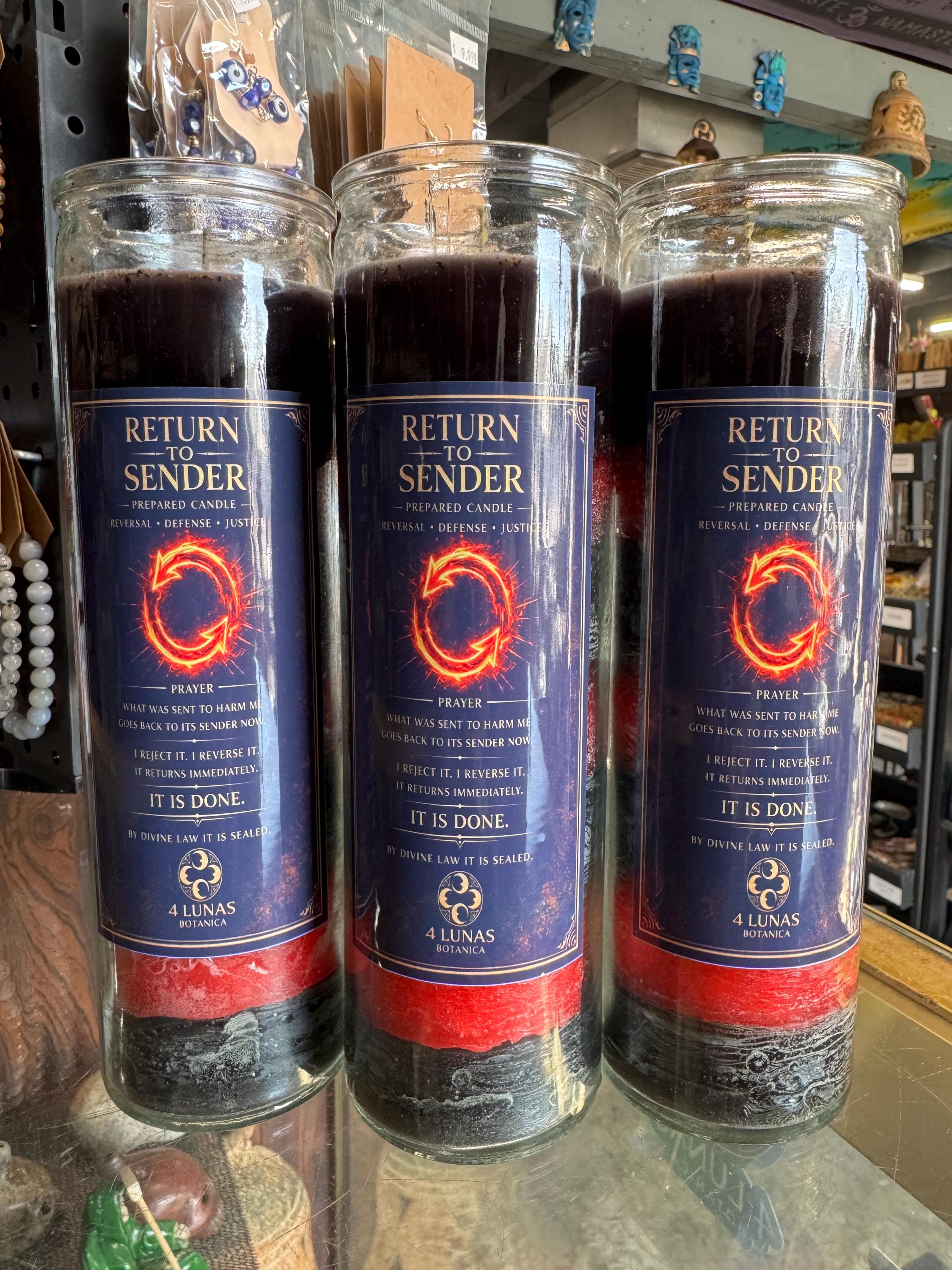 Send negativity back where it came from with our Return to Sender Prepared Candle, created for spiritual reversal, protection, and energetic defense.