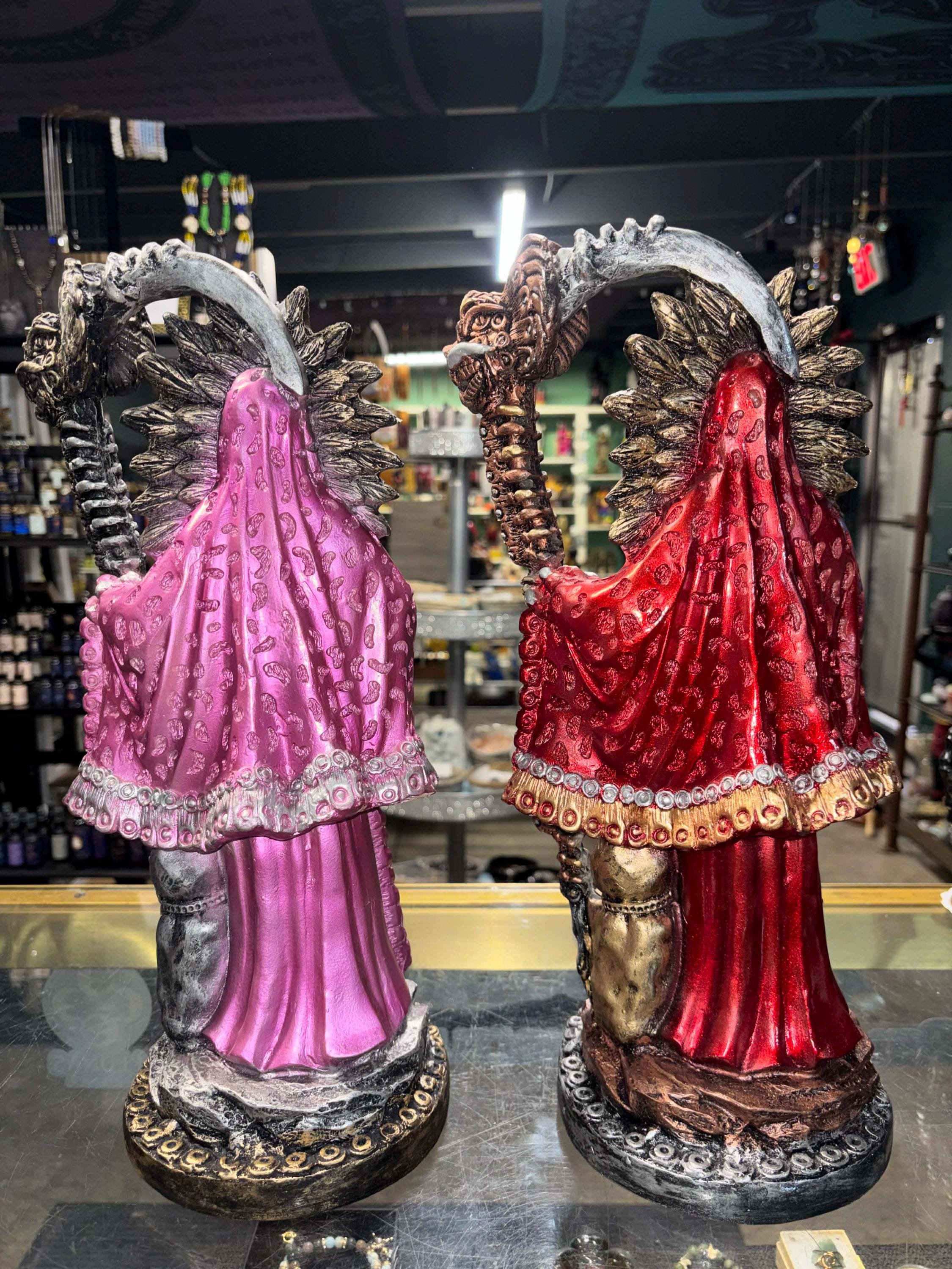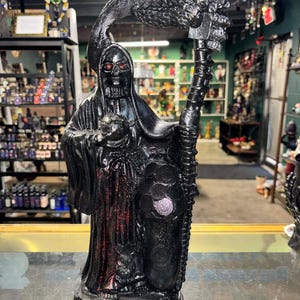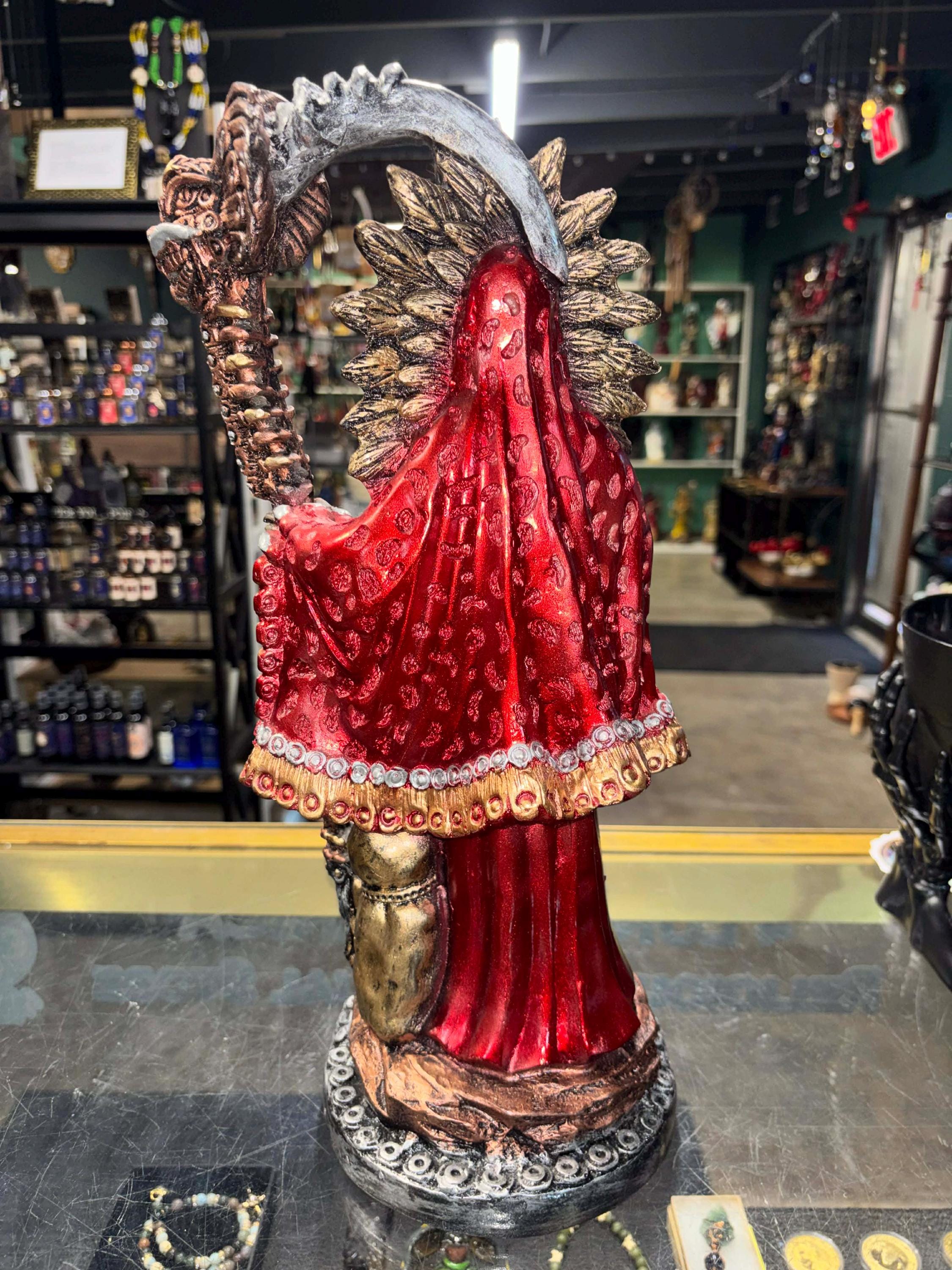 Designed for spiritual work, protection, devotion, and ritual use. The detailed robe, skull features, and serpent staff reflect transformation, guidance, and strength. Perfect for those who work closely with Santa Muerte or want a bold spiritual presence in their space.